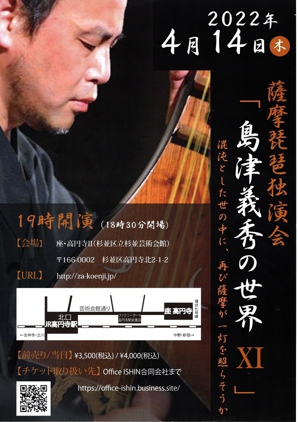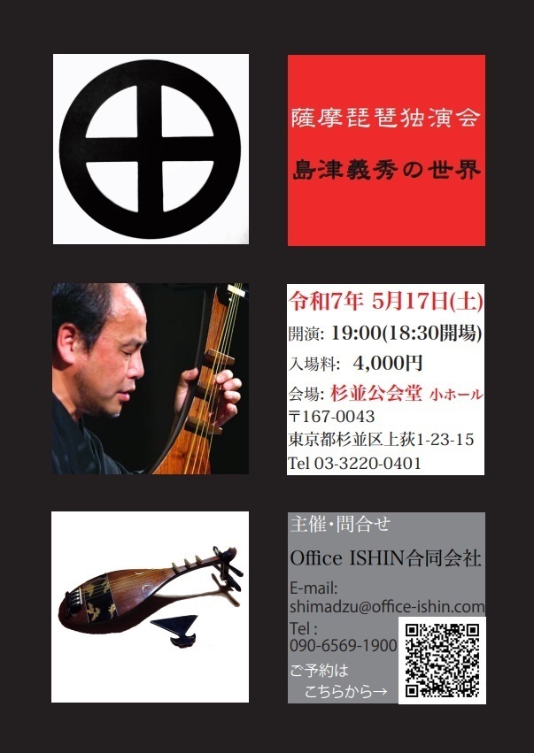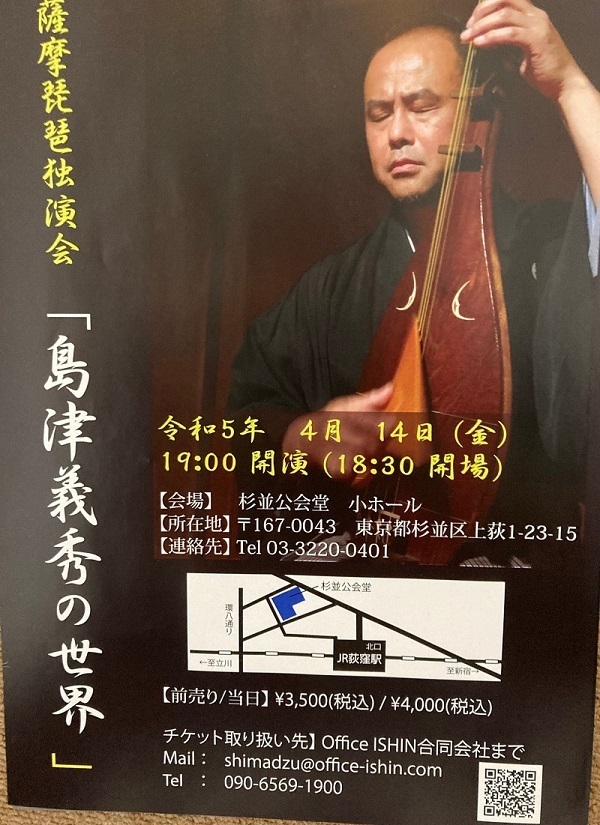 もう一点、こんなご時世なので流動的な部分もあるかと思いますが島津義秀さんの薩摩琵琶のご案内です。