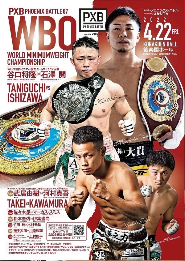 谷口将隆WBO世界ミニマム級チャンピオンの来年1/6 二度目防衛戦のご案内!(2022.11.13)